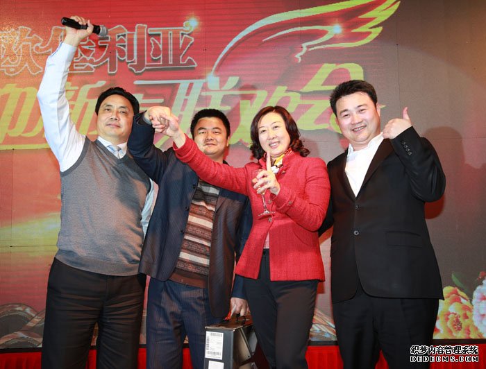 整台晚会文艺节目+抽奖组合精彩分呈,创意连连,歌舞首先点亮了春的气息。整个大厅布置得红红火火,热闹喜庆,处处洋溢着欢乐祥和的气氛。欧堡利亚股权投资管理有限公司将最具民族特色的舞蹈《最炫民族风》结合年度最流行的江南style风格,开场给观众带来眼前一亮的惊喜。热力四射的动感舞《咋了爸爸》,复古柔情的《墨舞》、悠扬袅娜的独舞《青花瓷》,舞蹈流派风格迥异,让人看得如痴如醉,流连忘返。创意独特的音乐串烧、模仿秀,更是将经典音律再现于舞台。江苏欧堡利亚大酒店带来的工装走秀仪态万方,表演者精神饱满、形象大方、动作精准,以优美的姿态展示了五星级酒店风采。配乐朗诵《故乡的原风景》充满浓郁思乡之情,一支陶笛,一段人生,执着追求事业的奋斗精神也成为集团的精神实质与深邃内涵,深植人心并激励人奋斗。每个节目都各具特色,体现出大家的精心组织和积极准备,穿插其中的抽奖环节更是揪人心悬,让人期待。戴春明董事长和盐城市驻沪联络处顾向阳主任携手高歌一曲,高亢的歌声一出喉顿时引起现场的阵阵掌声,将晚会的气氛推向了高潮。由戴春明董事长与顾主任共同抽取特等奖——笔记本电脑,鸿运大奖花落谁家终于尘埃落定。