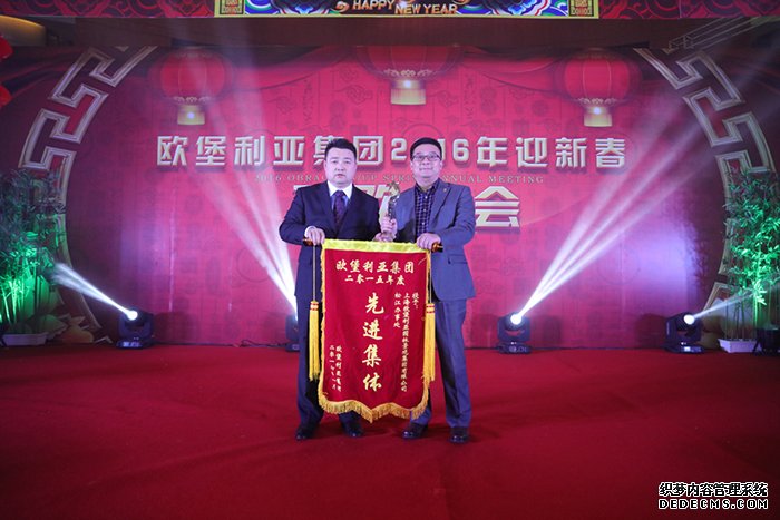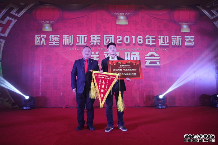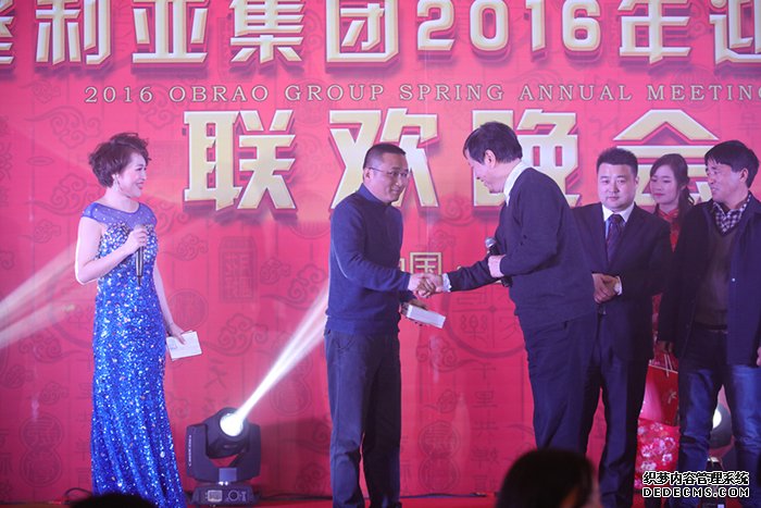 节目中间,大会还对集团2015年度涌现的一个个优秀的标兵、模范同仁进行表彰,欧堡利亚集团总经理助理张龙先宣读了“欧堡利亚集团2015年度先进集体、先进班组、先进个人表彰决定”,并号召全体员工向他们学习,学习他们在各自岗位上尽职尽责、任劳任怨,特别是舍小我顾大局的团队精神!戴春明董事长、刘总和夏总为优秀员工和团队颁发了证书和奖品,鼓励他们戒骄戒躁,在新的一年起到模范带头作用,做出新的贡献。