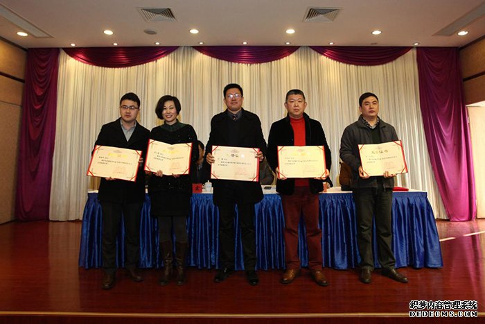 ▲盐城欧堡利亚城市投资股份有限公司总经理戴爱明(左一)代表戴春明董事长上台领奖