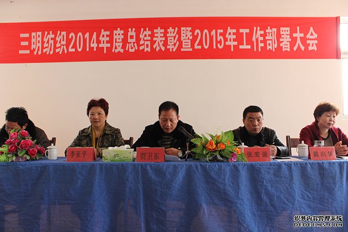 3月8日上午,三明纺织有限公司隆重召开2014年度总结表彰暨2015年工作部署大会,华松事业部常务副总贾卫东、三明纺织有限公司总经理李亚平及330名员工共同出席大会。