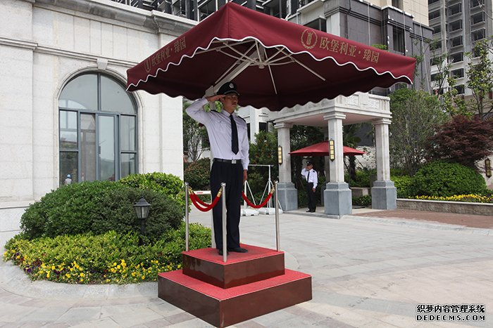 形象保安面带微笑行标准军礼,用规范的交通手势指挥车辆到指定位置停放好(机动车和非机动车),用礼宾动作为客户打开车门,用标准语言问好和安全提醒(如遇下雨天或烈日天可为客户打伞并护送到达销售中心门口)。