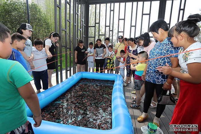而钓龙虾大赛现场更是热闹,宝贝们举着小鱼竿,在鱼钩上面挂上鸡胸肉,不时就可以把龙虾钓上来。而且在限定的时间内钓到的龙虾都可以全部带回家,大家更是铆足了劲去“勾引”龙虾们,现场简直可以用疯狂去形容。紧挨着钓龙虾大赛区域的就是套圈圈游戏,每位参与游戏的小朋友5个套圈,套中的礼品就可以直接带走。不时看到有小朋友们右手拎着一袋龙虾,左手拿着套中的礼物合不拢嘴的回到销售展示中心。现场还精心准备了饮料与零食糕点供大家畅饮。