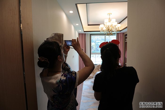 现场无论是沙盘前还是销控表前都挤满了来看房的客户,精神饱满的置业顾问们为每位客户详尽的介绍着小区信息、户型、配套、环境、学区等情况。随后邀请客户来到精工样板间现场看户型与装修,对于本次一同开放的悦府花园洋房新中式装修风格的样板房,前来参观的准业主孙先生连连夸赞,他表示在滨海还是第一次见到这种装修精致、做工考究的新中式装修风格,很有意向未来自己的新家也这么装修。