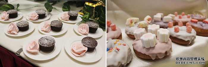 更有精致的小蛋糕、甜甜圈,让在场的情侣们体会着浪漫与优雅,细品其中幸福的滋味。