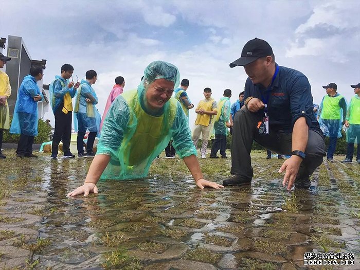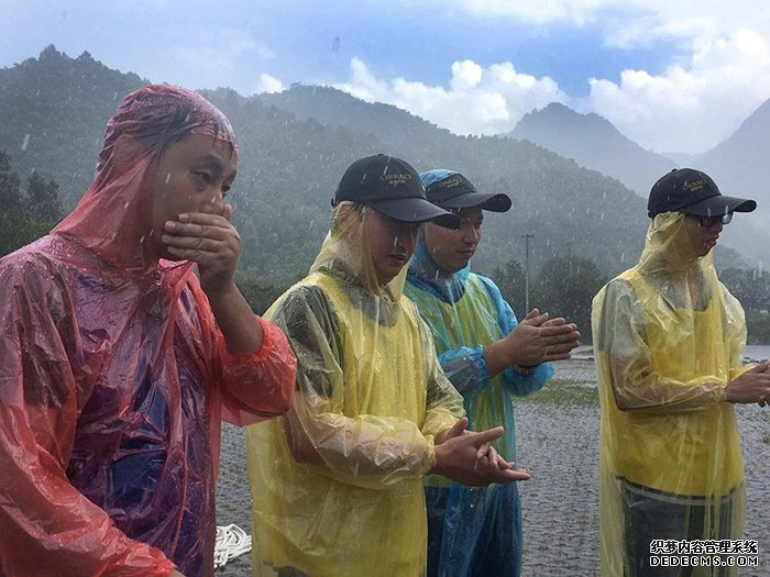 拓展当天最令大家难以忘怀的是在暴雨中进行的“团队报数”项目,由于团队中有人拖了后腿而使团队的队长在暴雨中接受做俯卧撑惩罚,受罚队长在暴雨中一次又一次挑战自己的身体极限,残酷的现实让大家不忍直视,全体队员在雨水中自主一起受罚,从嘻哈到严肃,这一幕幕令大家记忆犹新。