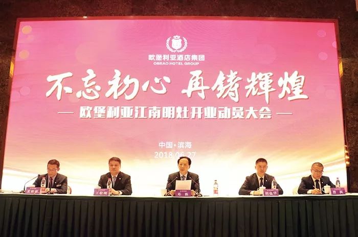 6月27日,在欧堡利亚宴会中心一号厅隆重召开了欧堡利亚江南明灶开业动员大会,欧堡利亚酒店集团总经理邓栋、副总经理胡也华、副总经理王毅刚、总经理助理曹枫及各部门人员,欧堡利亚大酒店经理级及以上人员、欧堡利亚宴会中心主管级及以上人员、欧堡格林东方酒店主管级及以上人员、欧堡利亚滨海格林豪泰酒店经理级及以上人员、欧堡利亚北辰商务酒店店长、欧堡利亚滨海商管公司领班级以上人员、欧堡利亚江南明灶全员,共有140参加了此次会议,大会由欧堡利亚江南明灶总经理夏彬彬主持。
