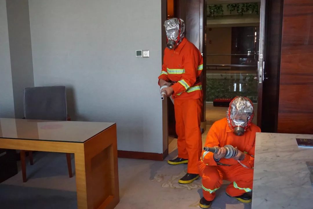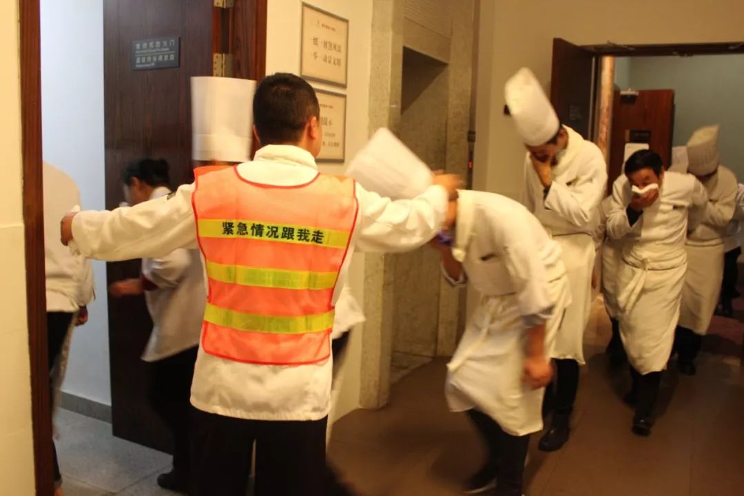 酒店员工听到广播后,在未提前通知的情况下,都能遵循消防安全培训的知识要点,迅速、有序、安全、互助地疏散,保安人员认真清点了人数,短短的5分钟,一个都不少地来到了安全地带,“惊心动魄”的消防演习更增加了大家对生命厚重感的认知。