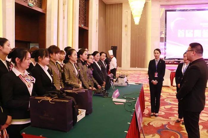 参赛选手代表李娜、评委代表张天虹分别发言之后,“欧堡利亚酒店集团首届岗位技能大赛”于13:48揭开了大赛序幕。