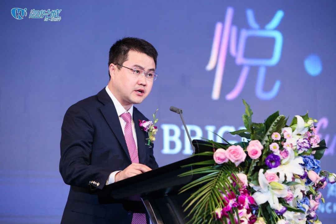 随后,在主持人的邀请下,欧堡利亚集团总经理戴爱明先生上台为此次签约盛典致辞,对莅临现场的一众商家代表致以热烈的欢迎,并对项目所处的地理位置及周边的资源配套进行介绍,并相信在海悦城广场强大的品牌影响力及商业价值下,项目必将成为滨海财富高地。