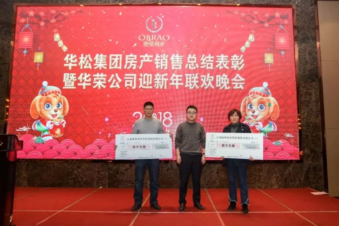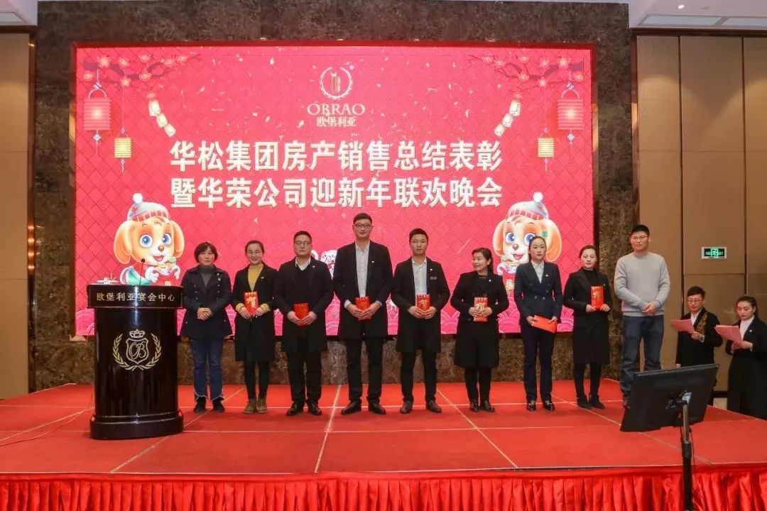 2月8日,欧堡利亚华松集团房产销售总结表彰暨迎新年联欢晚会在欧堡利亚宴会中心隆重召开。欧堡利亚华松集团高管、各地区房产公司负责人及江苏华荣房地产经纪有限公司负责人与一线销售、策划人员齐聚一堂,把酒言欢,共商2018欧堡利亚地产发展大计。