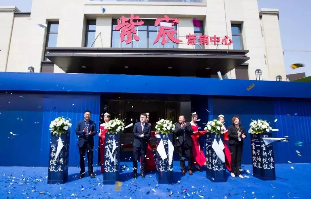 5月1日上午,欧堡利亚·紫宸全新打造的销售展示中心广场前光彩夺目,歌声飞扬,高朋满座。江苏欧堡利亚华松实业集团有限公司总经理戴爱明、滨海欧堡利亚置业有限公司总经理樊健、副总经理冯军、江苏华荣房地产经纪有限公司营销总监居艳与在场来宾共同见证紫宸销售展示中心的全新绽放。