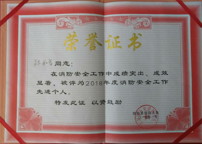 总结大会上,滨海县消防大队对2018年全县消防工作的20家先进单位及10位先进个人进行了表彰和颁奖,欧堡利亚酒店集团荣获了“2018年度消防安全管理工作先进单位”,欧堡利亚滨海商管公司张和军经理被评为“2018年度消防安全工作先进个人”。