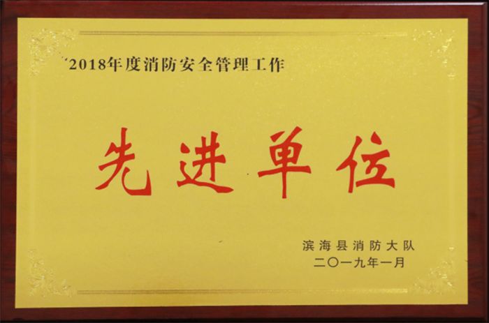 欧堡利亚酒店集团被授予“滨海县2018年度消防安全管理工作先进单位”称号