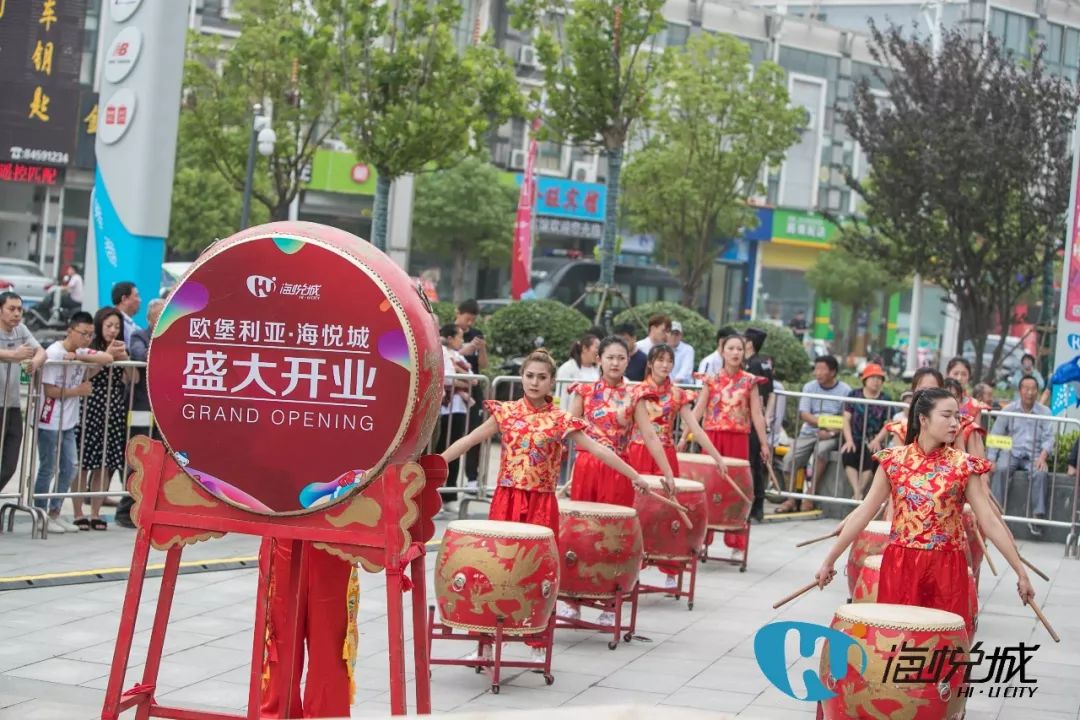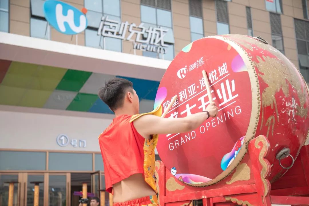 上午8:35,激昂的水鼓,震天的气势,“星光熠熠,华丽绽放”海悦城购物中心开业仪式正式开始。