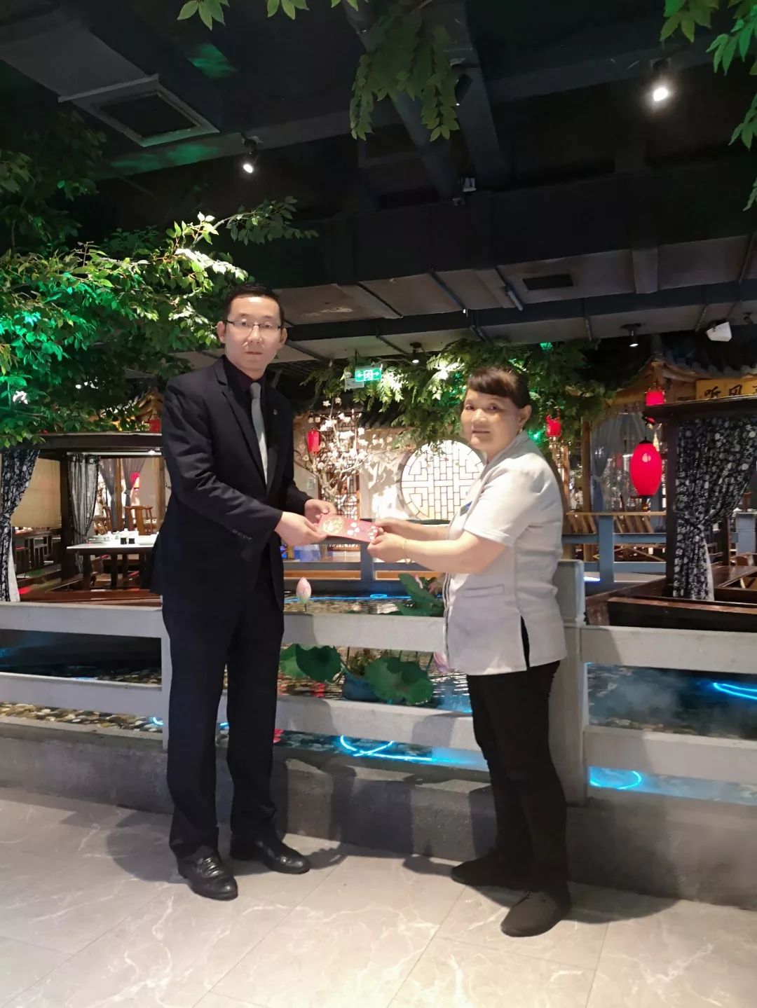 感动是瞬间的,精神是永恒的。为积极践行社会主义核心价值观,大力弘扬社会主义优良美德,全面推进欧堡利亚酒店文化建设,欧堡利亚酒店集团邓栋总经理知悉了此事后,立即作出批示,号召全体欧堡利亚酒店人都要身体力行,认真学习杨海云同志在平凡的岗位上做了凡人善举、弘扬了正能量,勿以善小而不为、勿以恶小而为之,从小事做起、从每一个细节做起,用实际行动展现欧堡利亚酒店人的优秀品质和精神风貌,并委托欧堡利亚江南明灶夏彬彬总经理向杨海云颁发了拾金不昧奖励金。