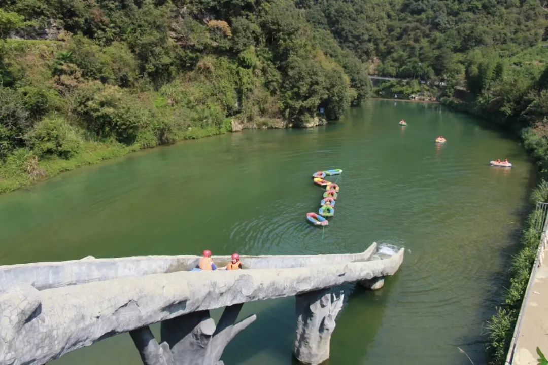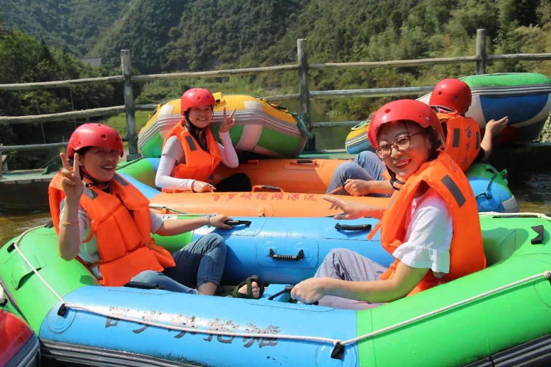下午,我们来到百岁峡山谷,大家迫不及待地更换好漂流服,按照自由组合的原则分成2人的小组,踏上橡皮艇,橡皮船顺流而下,水道的落差很大,连续多处人造水坡,坡陡水急,皮艇俯冲而下,激起数米高的层层浪花,不禁让人心跳加速,冰凉舒爽的那份快感又让人大呼过瘾,更激起了大家激流奋进的欲望。