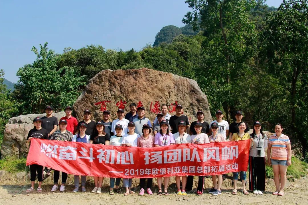 未觉池塘春草梦,阶前梧叶已秋声!为明确团队目标,提升员工凝聚力,增强员工的团队合作精神,丰富员工精神文化生活,打造一支能打胜战,作风优良的高素质团队!9月27日至28日,“燃奋斗初心 扬团队风帆”欧堡利亚集团总部2019年拓展训练活动在杭州桐庐神仙峰户外拓展基地顺利举行。