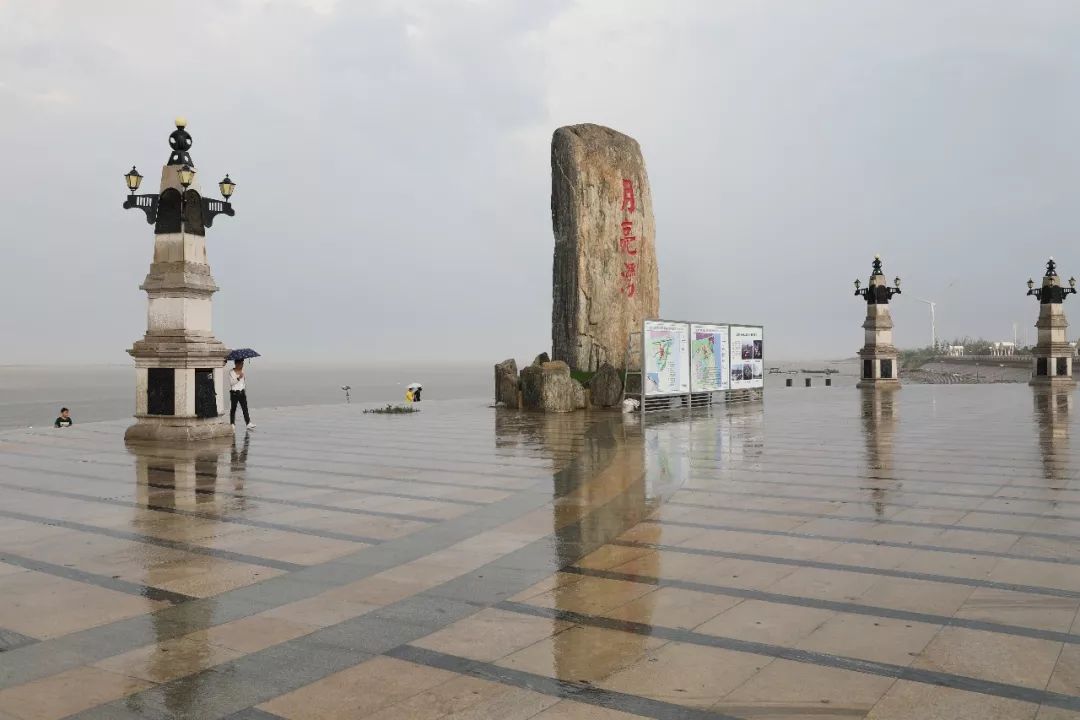 随后,考察团一行在滨海港工业园区分管领导张祖振副总的带领下前往滨海港区考察。滨海拥有44.6公里海岸线,位于滨海港区南侧的月亮湾是盐城沿海唯一的近海沙滩,古黄河从月亮湾这里入海、黄海领海基准点在这里设立、亚热带暖温带在这里分界。到达月亮湾时,大雨倾盆而下,浇灭了连日的暑热,大家凭海临风,亲海贴海,无与伦比。
