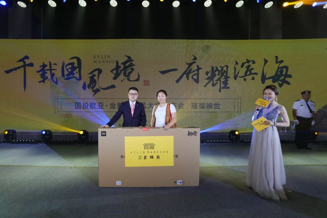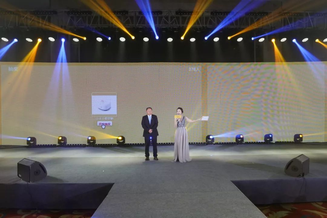 戴总为抽得一等奖的幸运客户颁奖,奖品为小米65寸4K电视机一台。