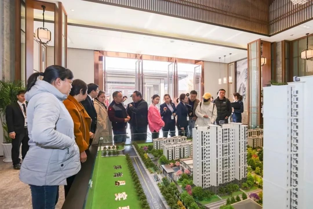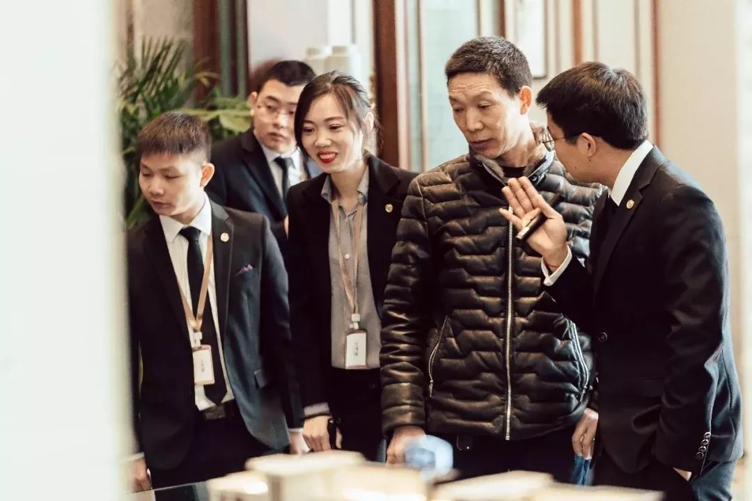 在现场工作人员的引领下,领导与现场嘉宾移至内场,参观金麟府城市生活馆设计,欣赏现场特意布置的茶道表演,茶香氤氲,水汽蒸腾,古色古香,韵致天成的表演,不仅与金麟府国风气质融通,也是金麟府未来书香生活的呈现。