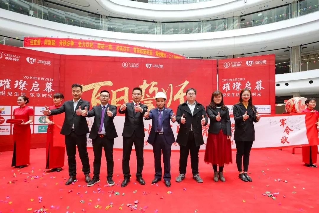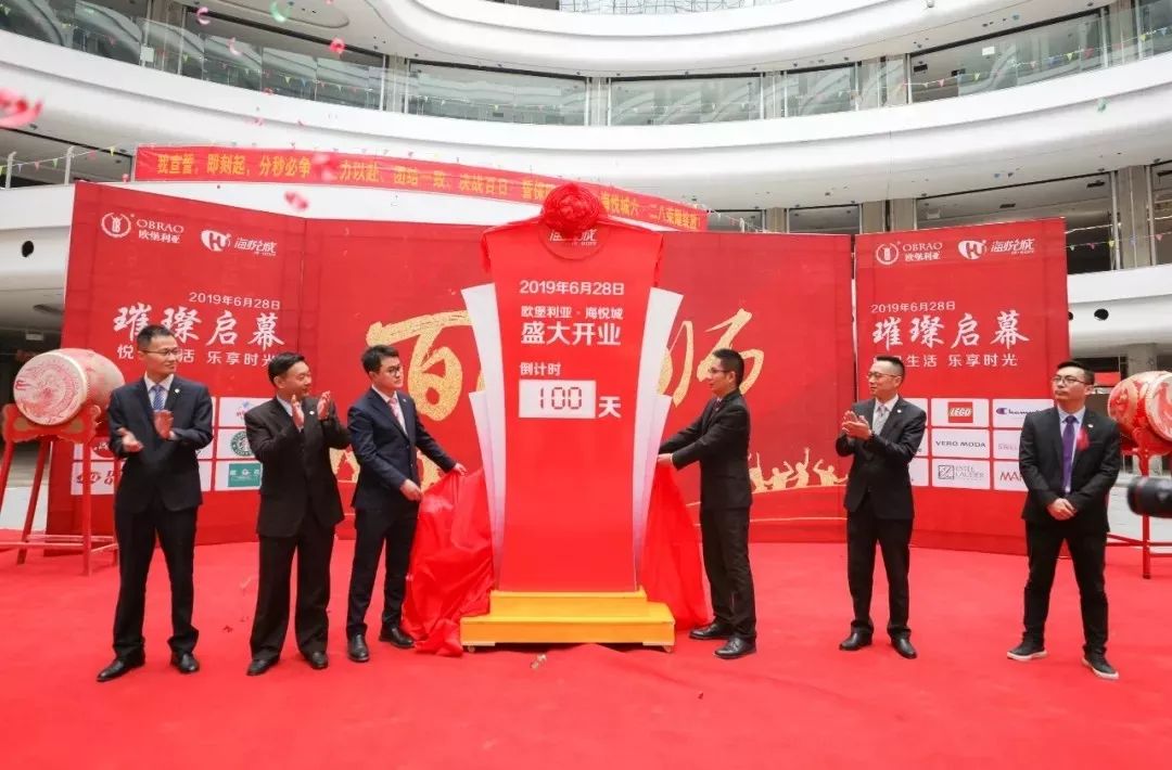 3月20日上午9:18分,海悦城购物中心开业倒计时100天誓师大会在商场中庭隆重举行!欧堡利亚华松集团总经理戴爱明先生、副董事长刘骋先生,欧悦商业运营管理有限公司总经理刘炳跃先生、副总经理倪安峰先生携全体员工、合作伙伴和部分商家代表共同见证了这个历史性的时刻。