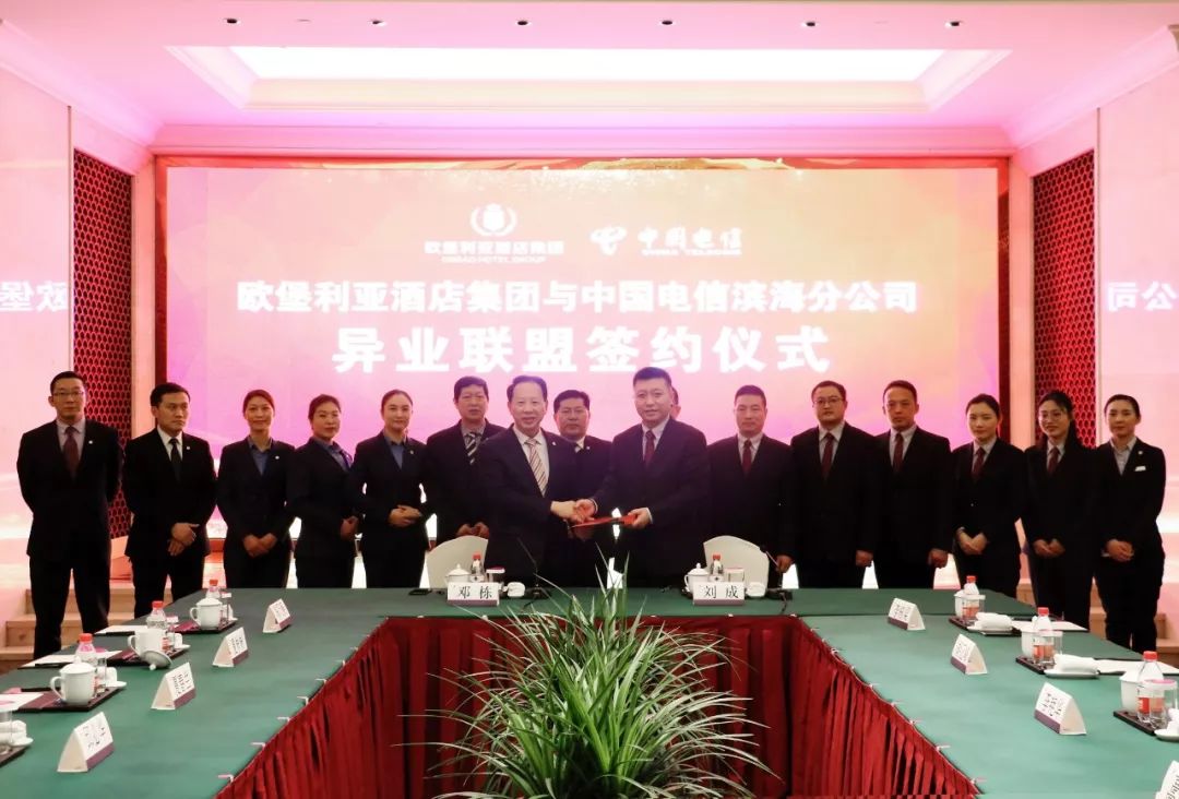 欧堡利亚酒店集团与中国电信滨海分公司异业联盟成功举行签约仪式