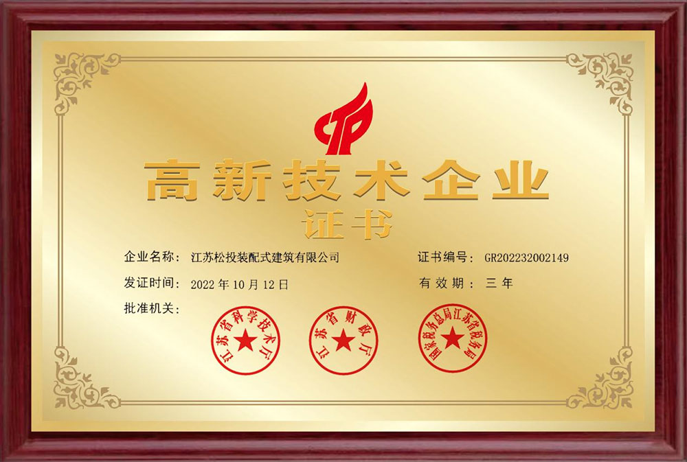 欧堡利亚地产集团工业板块——江苏松投装配式建筑有限公司自成立以来,得到集团和事业部领导的高度关心。经过属地推荐、专家评审、核查抽查等多个环节,公司的企业研发实力、核心自主知识产权、科技成果转化、研发投入和研发组织管理水平等顺利通过评审,日前已通过了高新技术企业的认定,取得了省科技厅、省财政厅、省税务局共同颁布的高新技术企业证书,成为欧堡利亚集团首家高新技术企业。