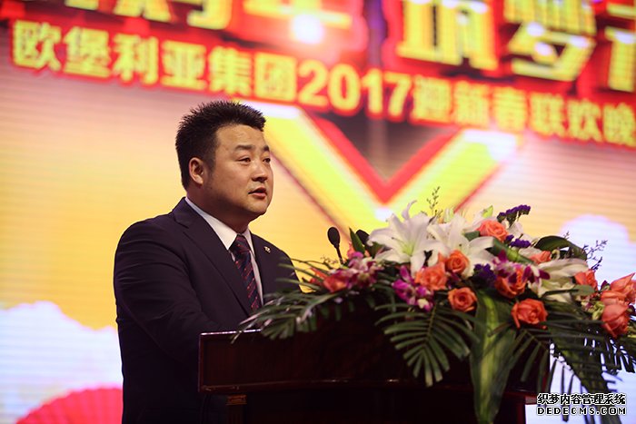 欧堡利亚集团董事长戴春明先生在致辞中讲到:2016年底集团提出了三年发展规划,确定了以三大事业部为中心,全力发展集团各大核心业务,稳步实现集团战略发展的前进方向。2017年必将成为集团又一次腾飞的起点!每一个欧堡利亚人都该担负起这样的使命与责任,团结一心,一往无前。值此新春佳节来临之际,向社会各界友人及同仁拜年!