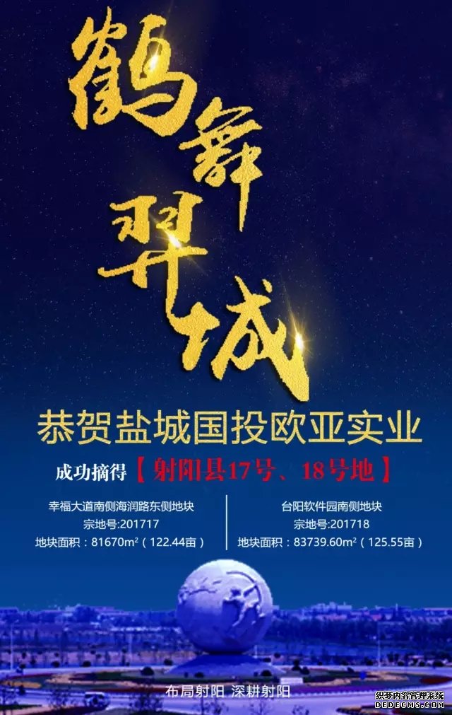 4月12日上午,盐城国投欧亚实业有限公司凭借强大的企业综合实力,以5.23亿元总价竞得江苏射阳17号和18号两大潜力地块,合计247.99亩。为欧堡利亚地产战略版图再添新成员!