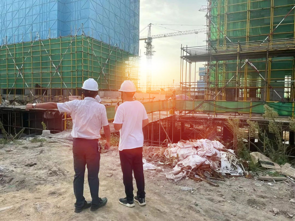 夕阳西下的傍晚,盐南滨杰晶曜上东项目现场仍一片热闹景象。现场工人各司其职,工作井然有序。他们不善言辞,看见镜头也只是微微一笑,仍旧忙活着手中的工作,没有半点被打扰。