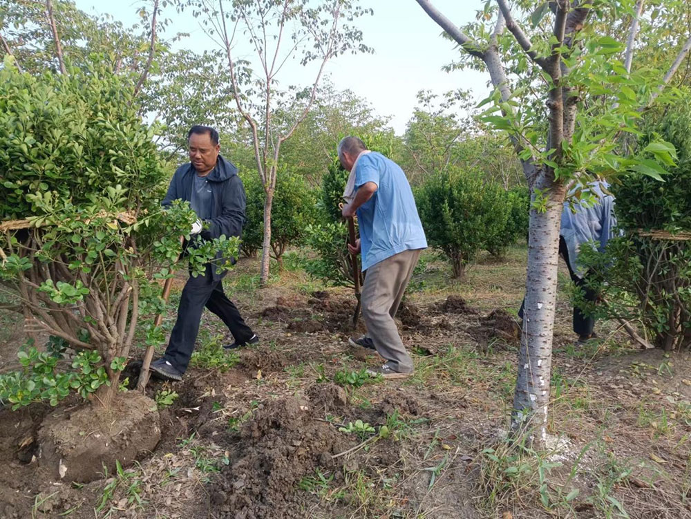 今年是产业园大规模补植补栽最紧张、任务最繁重的一年。为保证成活率,所有运来的树需要在一天或者更短的时间内全部栽种完毕。巨大的工作量没有让他后退一步,他主动放弃自己的休息时间,带领工人们一起翻地、挖坑,一起加班加点完成工作任务。